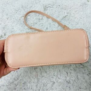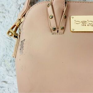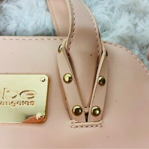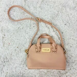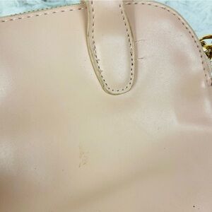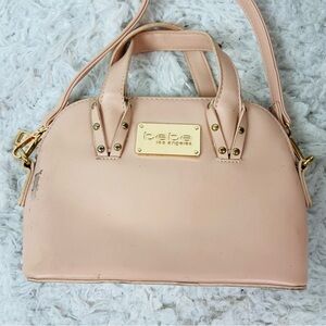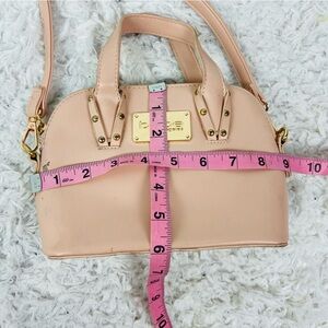 Chic Coach crossbody in nude leather. Features gold-tone accents. Ideal for versatile styling.