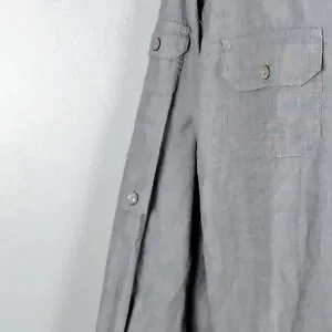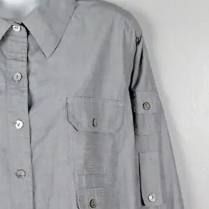 Chicos Gray 100% Cotton Roll Tab Sleeve Utility Button Down Shirt Size 3 XL