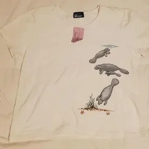 Manatee Tshirt Womens Handpainted Vintage Conservation