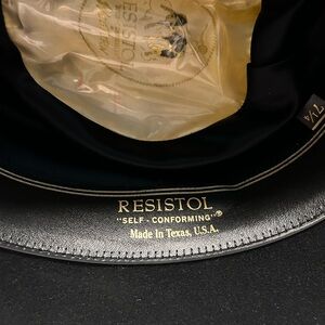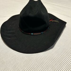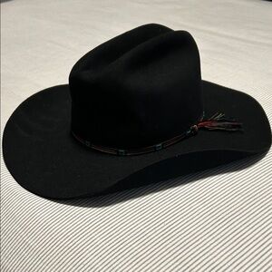 Classic black felt cowboy hat by Resistol. This is a 4X Beaver quality felt with a traditional cattleman crease and structured brim. Timeless western style.
