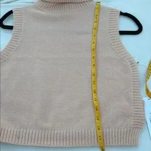 Chic and cozy turtleneck vest. Perfect for layering. Soft pink hue adds elegance.