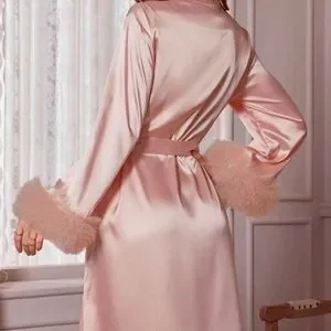 Valentines Pink Satin Smooth Belted Robe Kimono