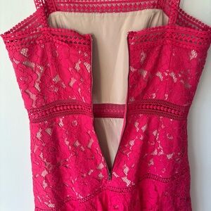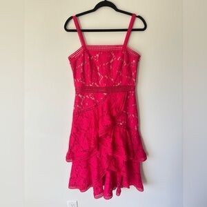 Alice + Olivia Angelita Asymmetric Tiered Lace Midi Dress Pink Formal Wedding