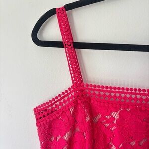 Alice + Olivia Angelita Asymmetric Tiered Lace Midi Dress Pink