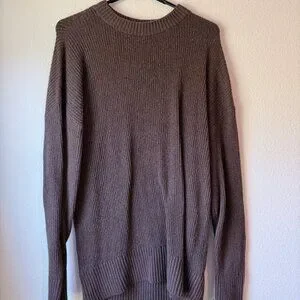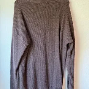 Cozy SoSoft knit in a neutral taupe/mushroom shade with an all-over textured stitch. Classic crew neckline with ribbed trim at the collar, cuffs, and hem for a clean finish. Easy everyday layer—soft, warm, and effortless with jeans or leggings. Tunic length. Washed but never worn.