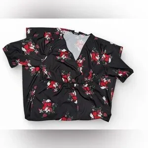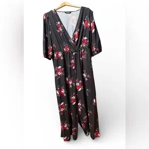 BloomChic Black Heart & Rose Print Wide-Leg Jumpsuit | US 18–20