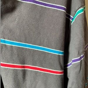 Great 90s vintage rugby pullover, Mens size XL for that oversize fit. Very on trend! Measurements in pic. Base color is a gray with purple undertones, or a grayish-brown depending on the light.