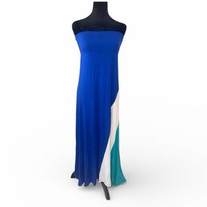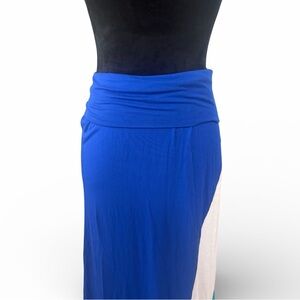 flowy, long skirt featuring distinct panels of blue, white, and a greenish-teal color, fold-over waistband for a comfortable fit, stretch. Blue, White,Teal green.Versatile you can wear as fold over skirt or pull up to wear as a dress, Tags were cut out .๐๐ก๐๐ธ