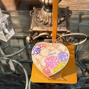 Charming heart-shaped Coin Pouch keychain by Coach. Features vibrant floral patterns. Perfect for accessorizing bags or keys.
