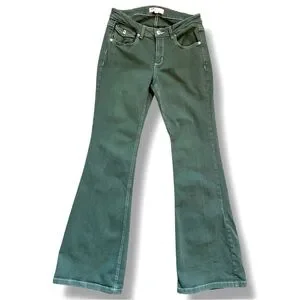 Garage Women's Juniors Green Low Rise Flared Jeans Size 7