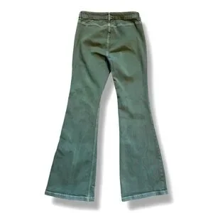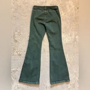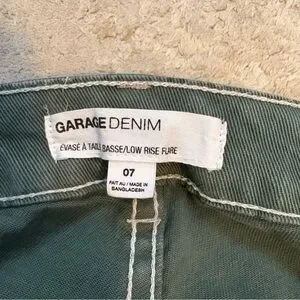 Garage Women's Juniors Green Low Rise Flared Jeans Size 7. Button and zipper closure. Full front pockets and belt loops. Baby button closure pocket inside front pocket. Contrasting stitching. Model pics created with the help of AI to show style.