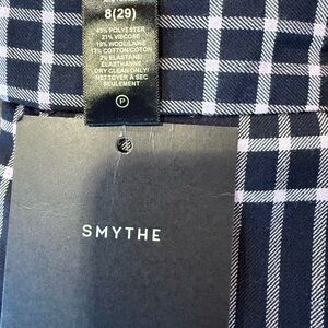 Elevate your wardrobe with these SMYTHE Windowpane Plaid Bootcut Pants, a polished blend of modern edge and timeless tailoring. Crafted with a luxe wool blend and finished in a chic navy and lilac grid, these pants deliver a sleek, elongating bootcut silhouette that flatters from every angle.