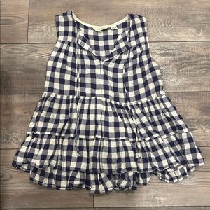 Anthropologie 11-1 Tylho Navy Blue And Ivory Gingham Swing Top
