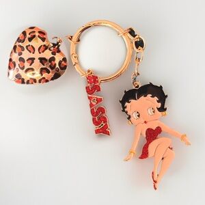 Betty Boop Sassy Key Ring Chain Bag Charm Leopard Gold Tone NWOT