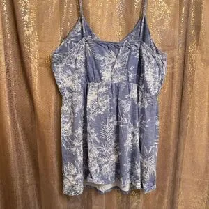 Old Navy Tropical Print Cotton Slub Knit Mini Dress/Top Light Blue XXL