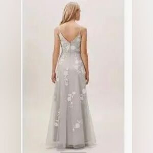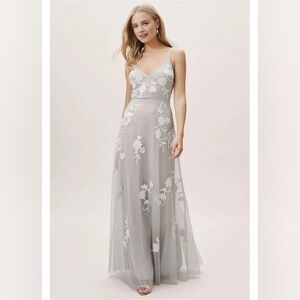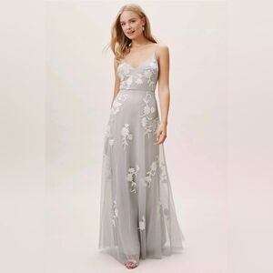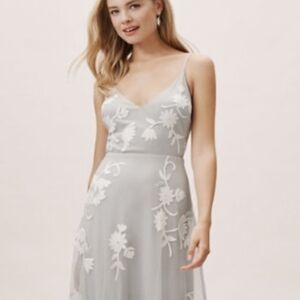 Anthropologie BHLDN Bethany Light Gray Floral Embroidered Dress