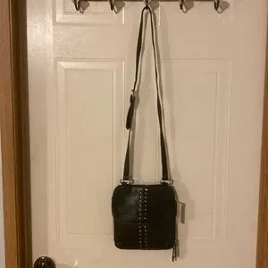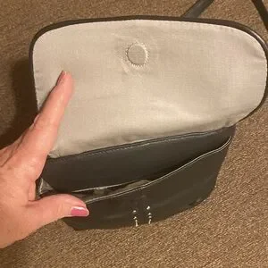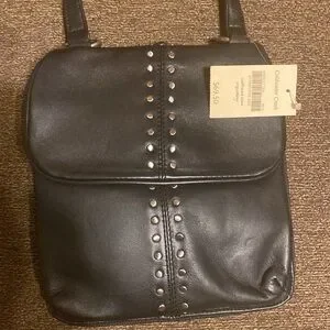 Black Coldwater Creek Handbag with long strap has zippered compartment with slots for credit cards and has magnetic snap on outside.New with tags.