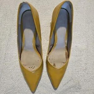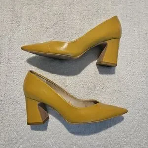 Zara Yellow Block Heels Size 9 Office Chunky Minimalist Retro Y2K Office Casual