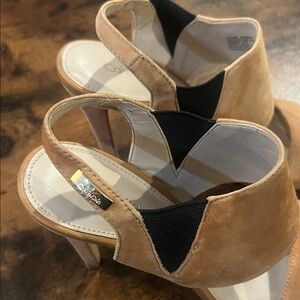 Calvin Klein Safari Suede Heeled Sandals in almond tan