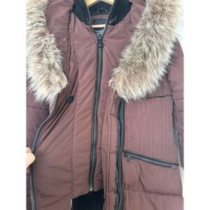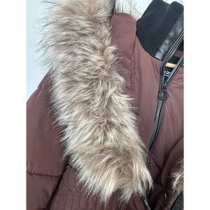Noize Womens Large Brown Vegan Faux Fur Trim Quilted Parka Jacket
