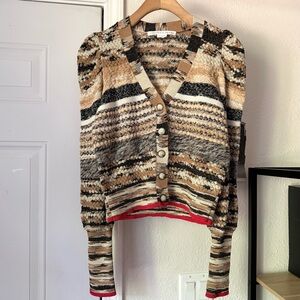 VERONICA BEARD multicolor chunky merino wool knit button up cardigan top sweater