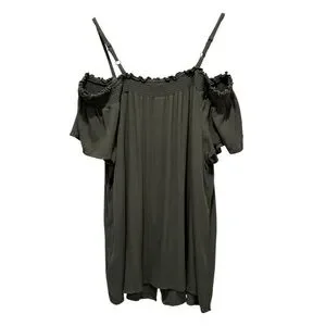 Torrid Smocked Cold-Shoulder Olive Green Rayon Blouse Size 1X