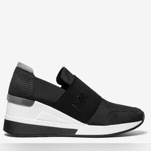 Step out in style with these sleek black slip-on sneakers from Michael Kors. Perfect for everyday wear, these shoes offer both comfort and elegance.