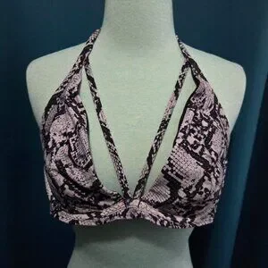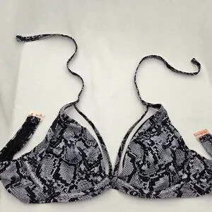About this item: Intoxicating Snakeskin Print: A high-contrast black and grey pattern | Architectural Halter Neckline: Double criss-cross straps create a provocative yet supportive structure | Gleaming Rose Gold Detail: The sophisticated, polished clasp closure adds a touch of high-end jewelry, elevating this swimwear to true resort wear.