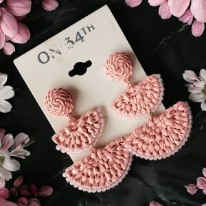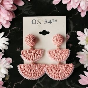 On 34th Pink Woven Raffia Bohemian Style Tiered Stud Earrings