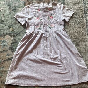 This elegant midi dress features exquisite floral embroidery, perfect for any occasion. The light lilac color adds a touch of sophistication.