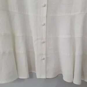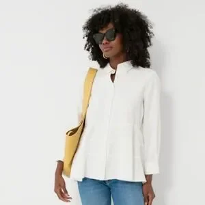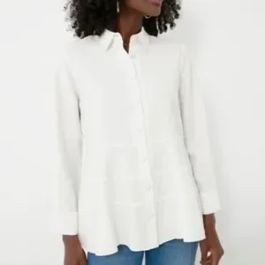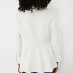 Your traditional button down with a twist, the Ashlen Blouse is the easiest piece that you need to update any look. With covered buttons that add a dash of tailored class, this subtle fit-and-flare number is designed with a tiered hem that makes it stand out in a bright white colorway that pairs well with everything. From denim to trousers, heels to sneakers, work to play, this year-round top does it all and will have you looking your best with just a few classic touches.