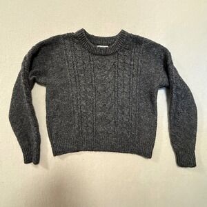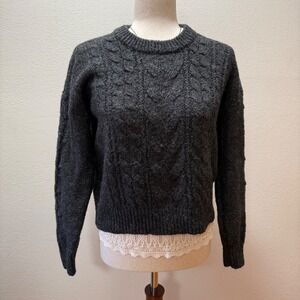 Old Navy Wool Blend Chunky Cable Knit Charcoal Gray Pullover Sweater Women XS