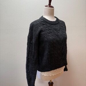 Old Navy Wool Blend Chunky Cable Knit Charcoal Gray Sweater Women XS