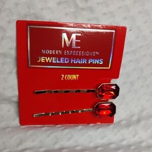 Add a touch of elegance to your hairstyle with these red jeweled hair pins from Modern Expressions. Perfect for any occasion.