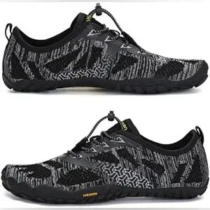 Super lightweight & breathable, comfortable to wear all day, with/without sock or insole. Easily hand-washed, comfortable to work and run in on multiple surfaces. These barefoot shoes work very well on sand and in aquatic environments. Sole material: Rubber, Outer material: Synthetic