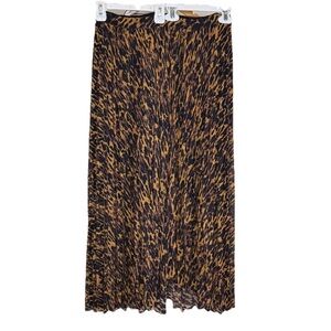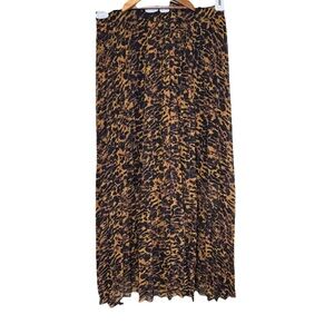AllSaints Cora Ambient Pleated Cheetah Print Hi Low Maxi Skirt, US 10