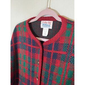 Tally Ho Sweater Women XL Red Plaid Granny Holiday Festive 80s Vtg Regal Grandpa