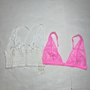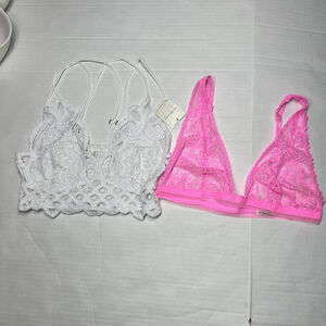 Free People Pink and White Lace Bralette Set