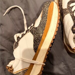 Casual chunky sneakers by Madewell in white, spotted black calf hair, and brown leather. Never worn. Size 7. Purchased for $90. I accept all reasonable offers :)