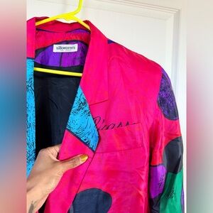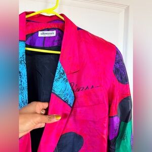 This rare vintage blazer from Silkworm’s High Fashion features a bold, Picasso-inspired abstract face print saturated in electric jewel tones. Designed for the woman who understands that fashion is art, this piece delivers instant presence the moment you enter a room.