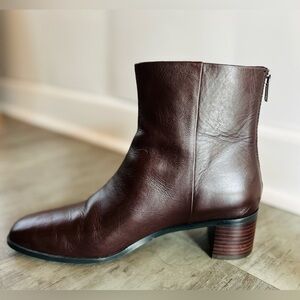 Madewell Block Heel Ankle Boots Dark Brown Leather Minimalist Size 8 Capsule