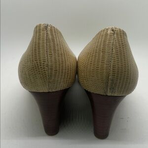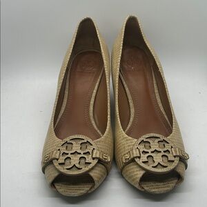 Sexy Tory Burch Tan Peep-Toe Wedge Heel Shoes. Size 8.5.