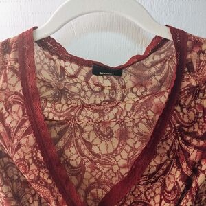 Chic lace sheer Y2K paisley top. lowcut and slightly stretches so that it's form fitting. I love this shirt it is the perfect 2000s top!!