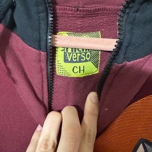 Vibrant maroon jacket with playful cartoon characters. Features black accents and zipper closure. Ideal for fun outings.