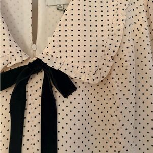 Reformation “Kaylia” Cream Polka Dot Mini Dress with Black Bow