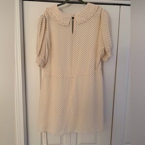 Chic cream mini dress with polka dots. Features a stylish black bow. Perfect for any occasion.