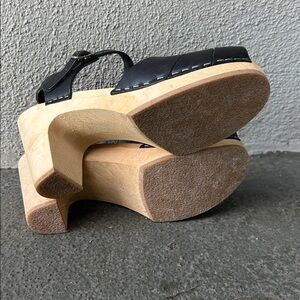 Sweedish Hasbeens Mirja Clog Sandals Size 38 Bohemian Vacation Resortwear in Unworn Condition. There is no wear on the soles just a slight discoloration on one of the insoles from storage.