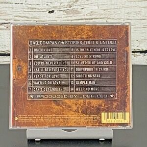 A vintage CD album by Bad Company, Stories Told & Untold offers a collection of rock music. This album features a tracklist including hits like One on One, Oh Atlanta, You're Never Alone, and Ready for Love, among others. Produced by Josh Leo, this CD provides a listening experience for fans of Bad Company and rock music enthusiasts.
