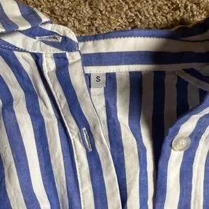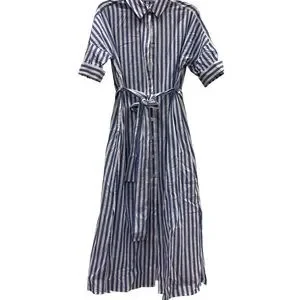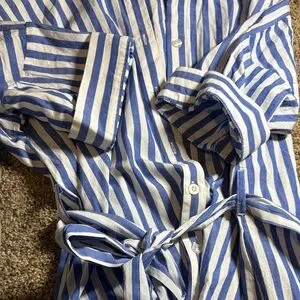 Elevate your wardrobe with this chic striped shirt dress. Featuring a stylish blue and white pattern, this dress is perfect for any occasion. The tie waist adds a flattering touch.
