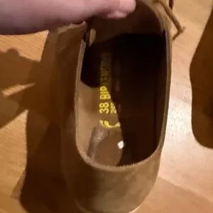 Stylish Birkenstock shoes in brown suede. Comfortable and durable design. Perfect for casual wear.